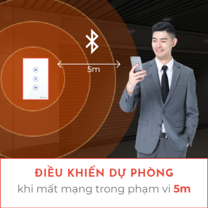 Trong trường hợp xui rủi như wifi bị lỗi, quên đóng tiền internet, “cá mập cắn cáp”,… thì công tắc vẫn có chế độ dự phòng cho chủ nhà mở cửa cuốn. Chủ nhân chỉ cần đứng gần cửa cuốn trong phạm vi 5 mét, mở ứng dụng lên, công tắc sẽ tự chuyển đổi sang chế độ phát Bluetooth để mở cửa cuốn. Đây là tính năng duy nhất trên công tắc cửa cuốn Vconnex.